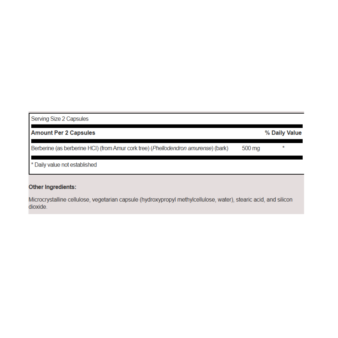 Our capsules contain plant-derived berberine, provided as berberine hydrochloride, a well-studied form of this important plant constituent.