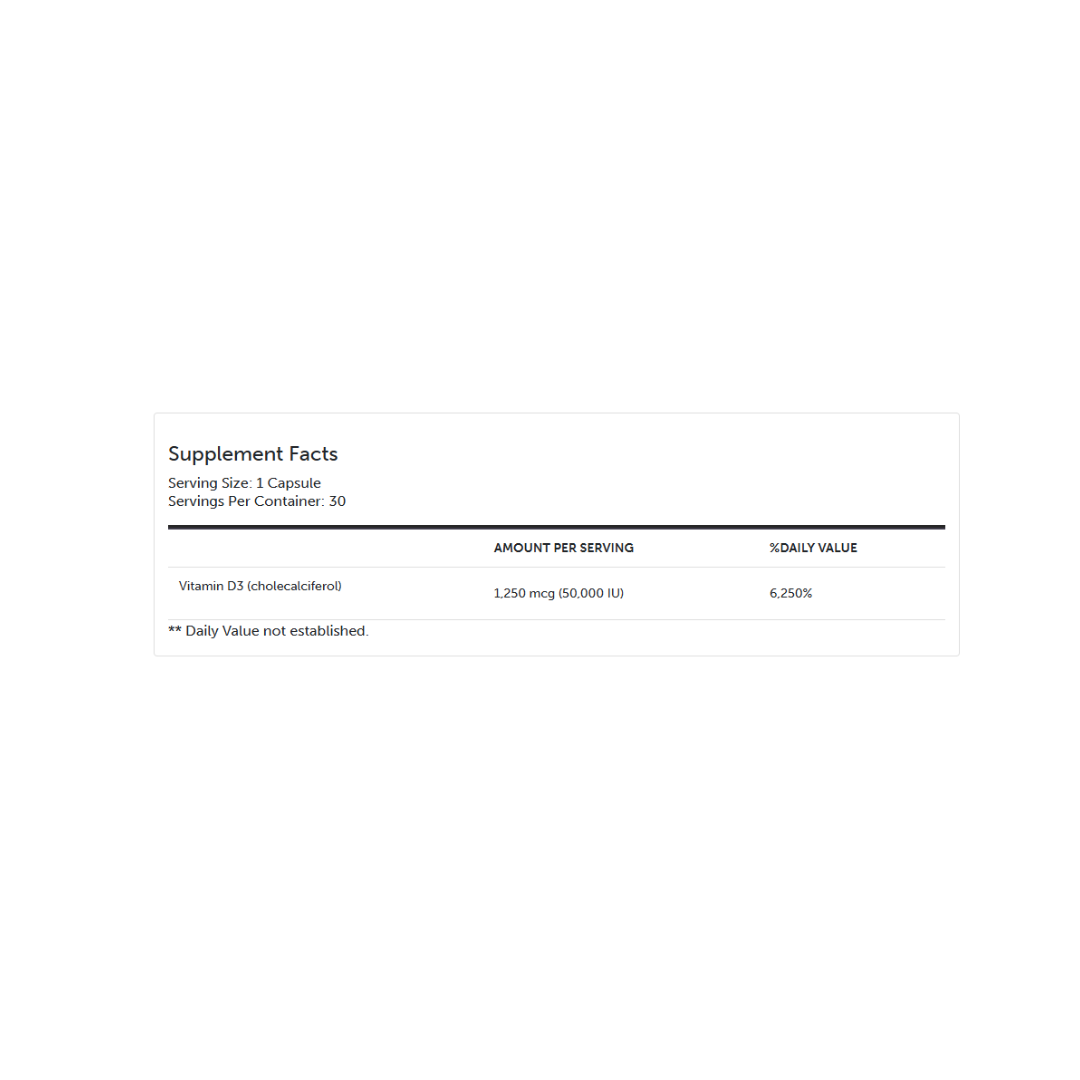 D3 50,000 IU is a convenient once-per-week solution for individuals whose healthcare professional has recommended a high-dose supplement to support the repletion of their vitamin D level. Vitamin D is a crucial nutrient to support immune function, musculoskeletal comfort, healthy blood sugar metabolism, and cardiovascular, bone, cognitive, and neurologic health.*
