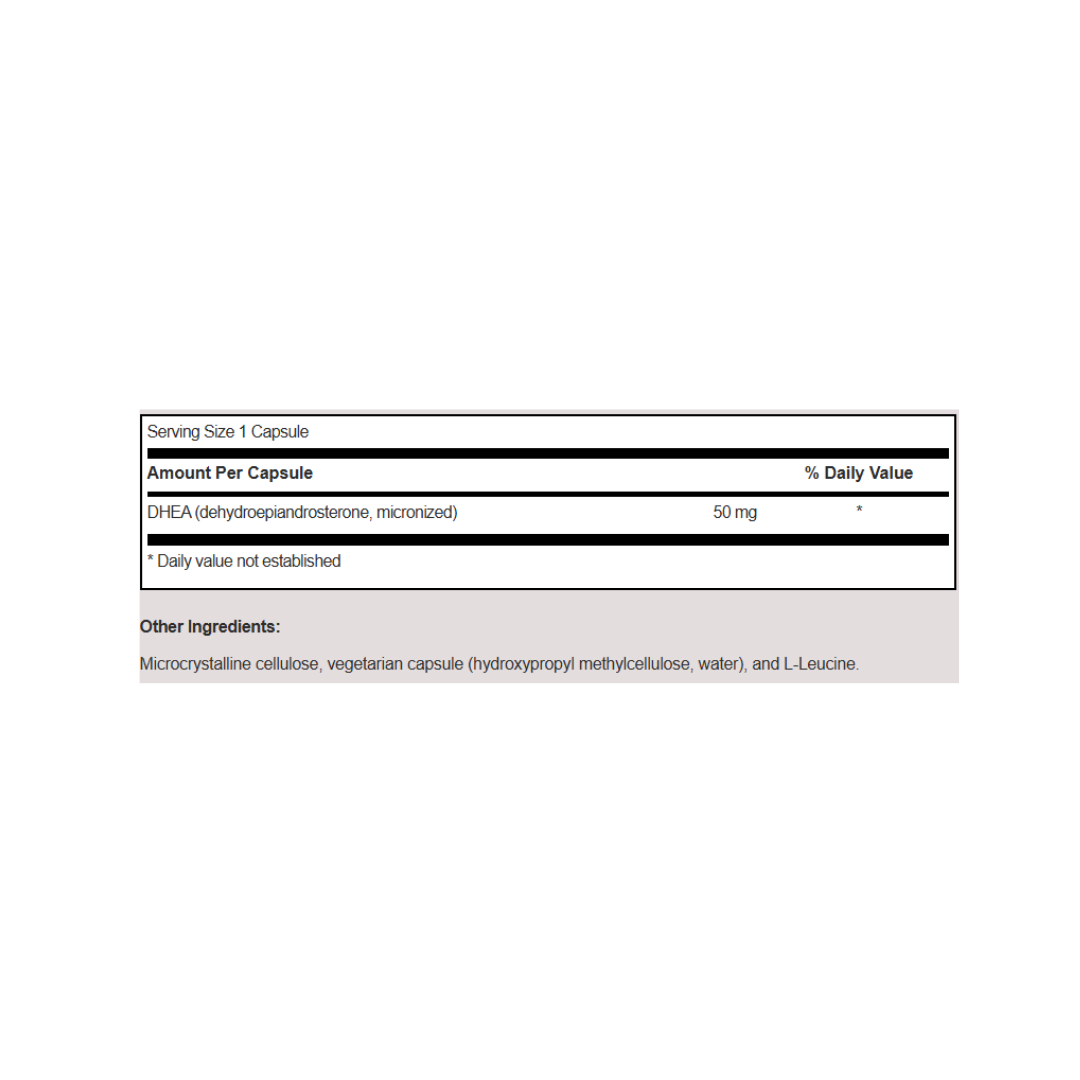 Provides pure DHEA that has been micronized to very small particle sizes to facilitate absorption. Levels of this adrenal hormone begin to decline by your 30s.