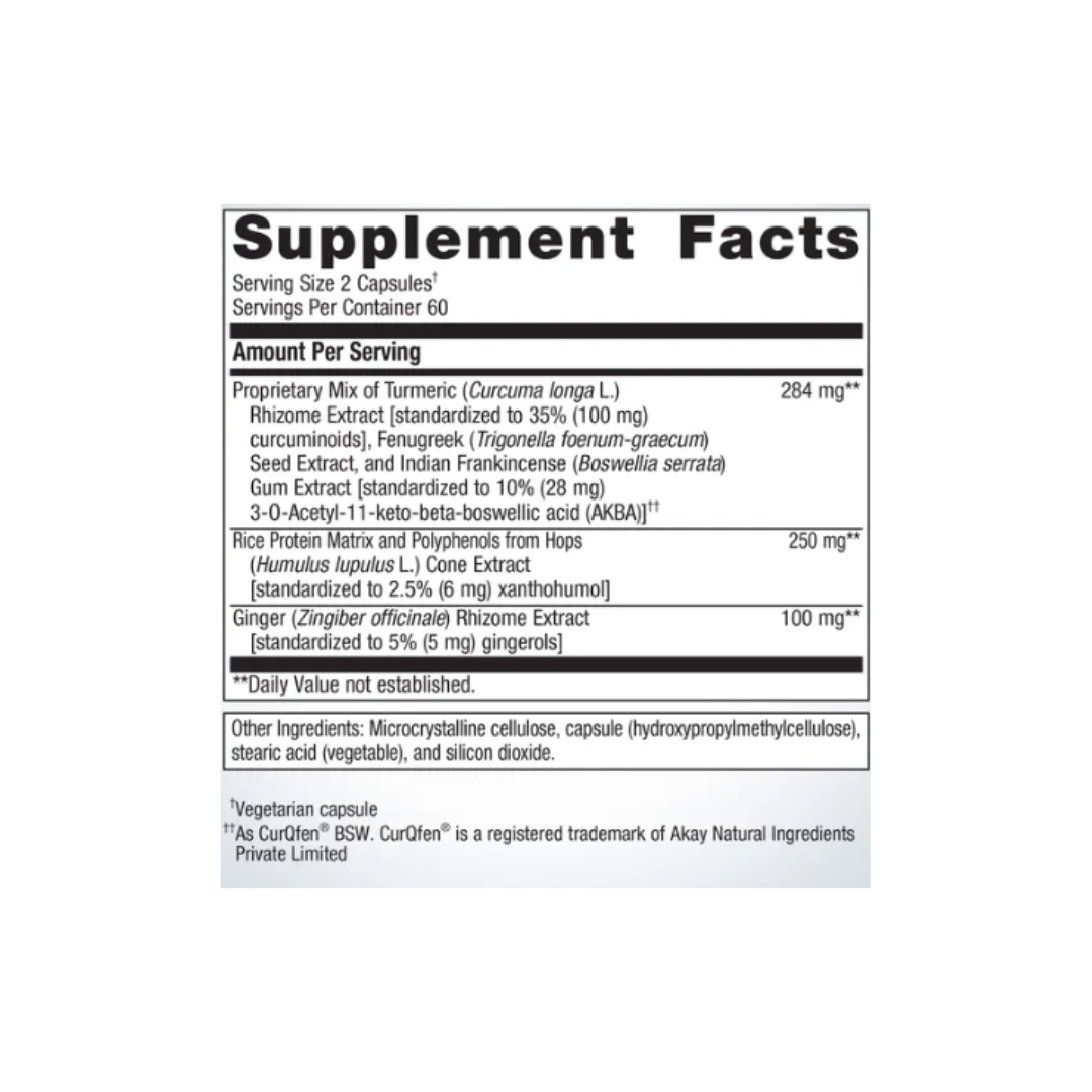 This advanced formula features CurQfen® BSW—a highly bioavailable blend of curcuminoids (from turmeric), AKBA (from Boswellia), and fenugreek—to help support a healthy inflammatory response.* It also includes XNT ProMatrix®, a specialized xanthohumol extract, along with ginger root extract, which may further support immune health.*