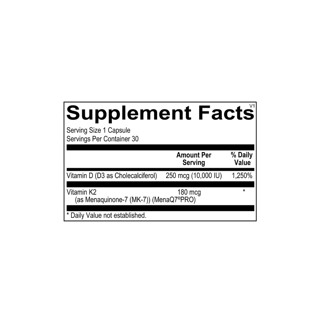 K-FORCE MAX provides 180 mcg of MenaQ7® PRO, the most widely studied form of vitamin K2 as MK-7, along with 10,000 IU of vitamin D3 for optimal support of bone and cardiovascular health.