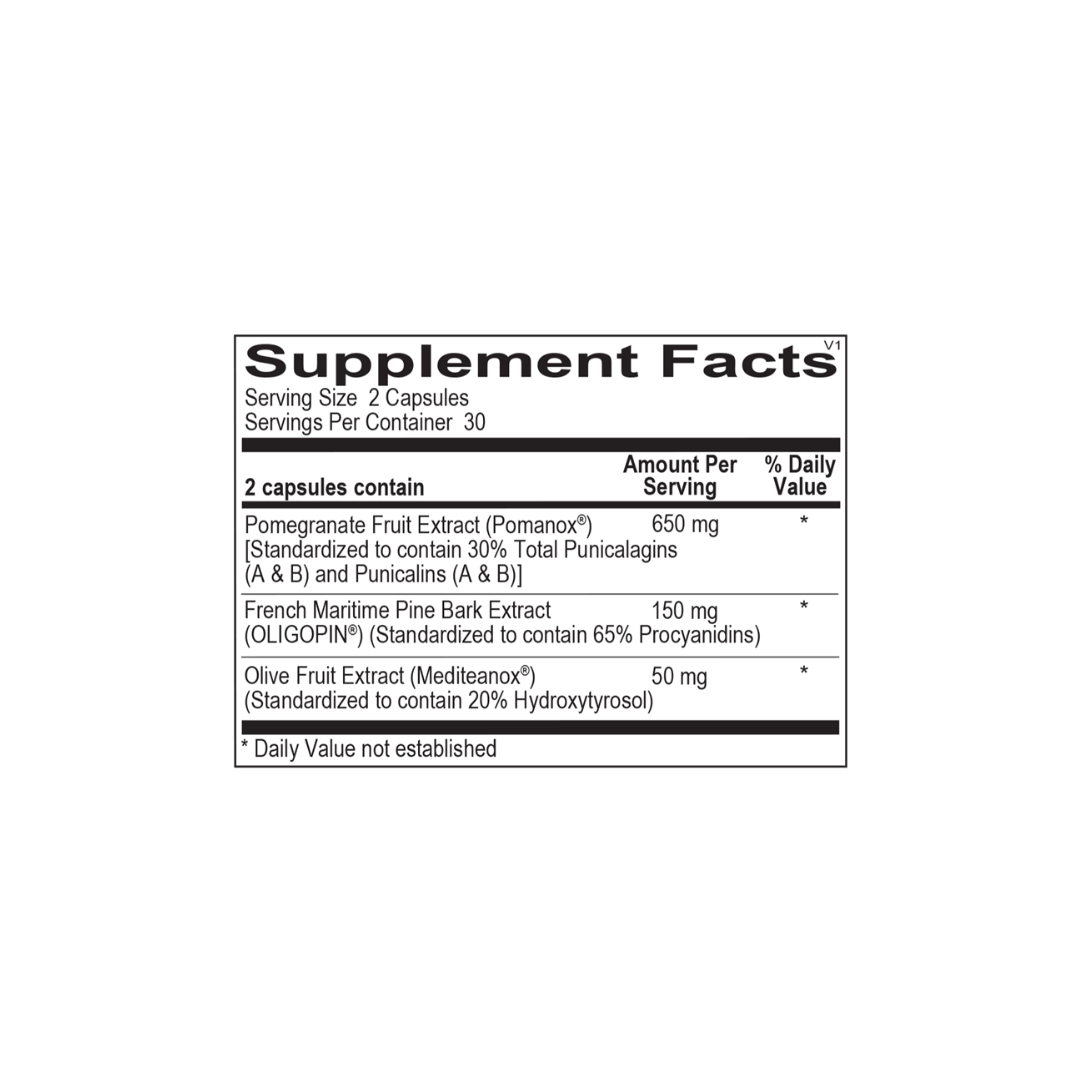 Medox Pro is designed to support the body’s ability to maintain healthy levels of oxidized LDL, which research indicates is an important factor in maintaining proper endothelial function and cardiovascular health. Containing standardized antioxidant extracts from olive fruit, pomegranate, and French maritime pine bark, Medox Pro synergistically maintains normal endothelial function, supports healthy blood pressure levels and a normal inflammatory response.