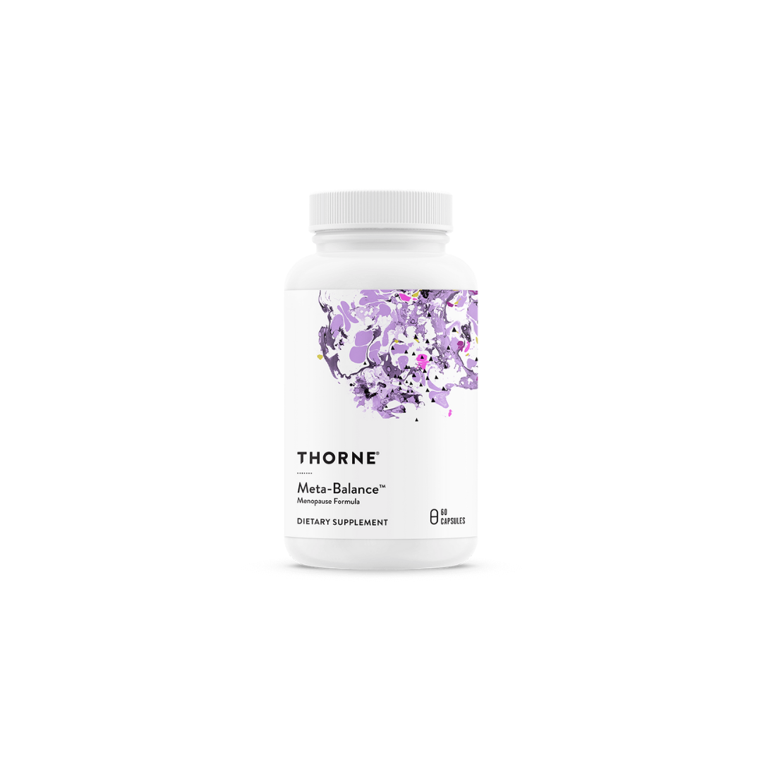 Thorne’s Meta-Balance provides an all-natural approach for women’s hormonal harmony without the side effects associated with conventional hormone replacement therapy.* The botanical formula includes unique, well-studied ingredients – chaste tree and black cohosh extracts, wild yam, and Pycnogenol from French maritime pine bark – a synergistic blend ideal for women experiencing cyclical, perimenopausal, or menopausal symptoms by helping balance both estrogen and progesterone levels.*