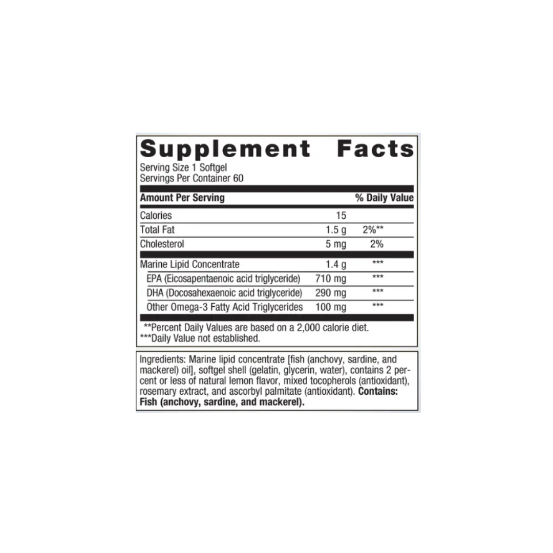 Each serving provides 710 mg of EPA and 290 mg of DHA from naturally sourced 100% wild-caught fish. Rigorously tested for 200 contaminants including heavy metals, enviornmental toxins, & plasticizers from microplastics.