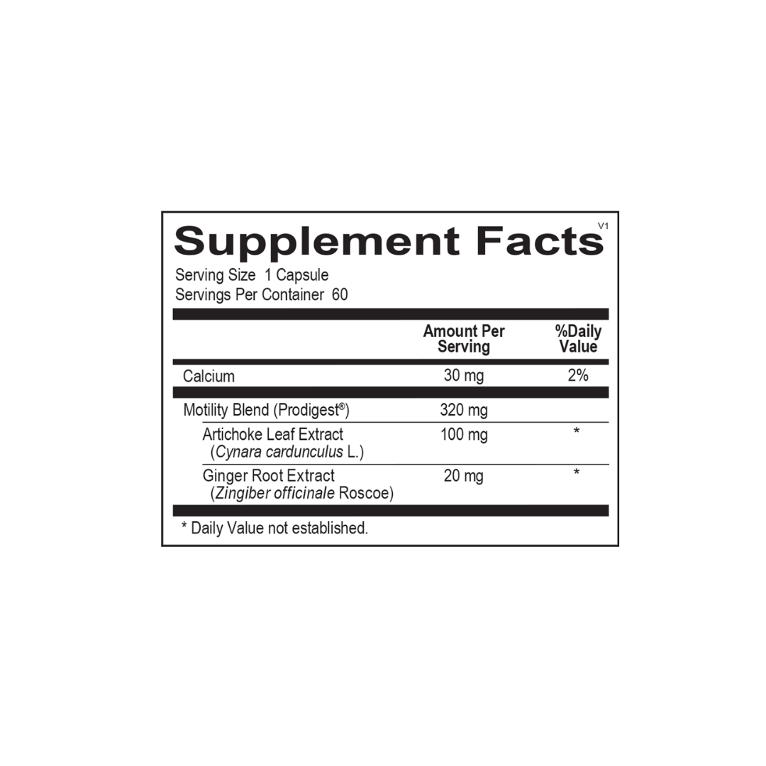 This distinctive blend of bioactives promotes contractions in the migrating motor complex, helping to restore proper motility, which ensures the steady flow of food particles and bacteria through the small intestine. In addition, it provides support for improved digestion and relief from temporary gas, bloating and associated GI discomfort.