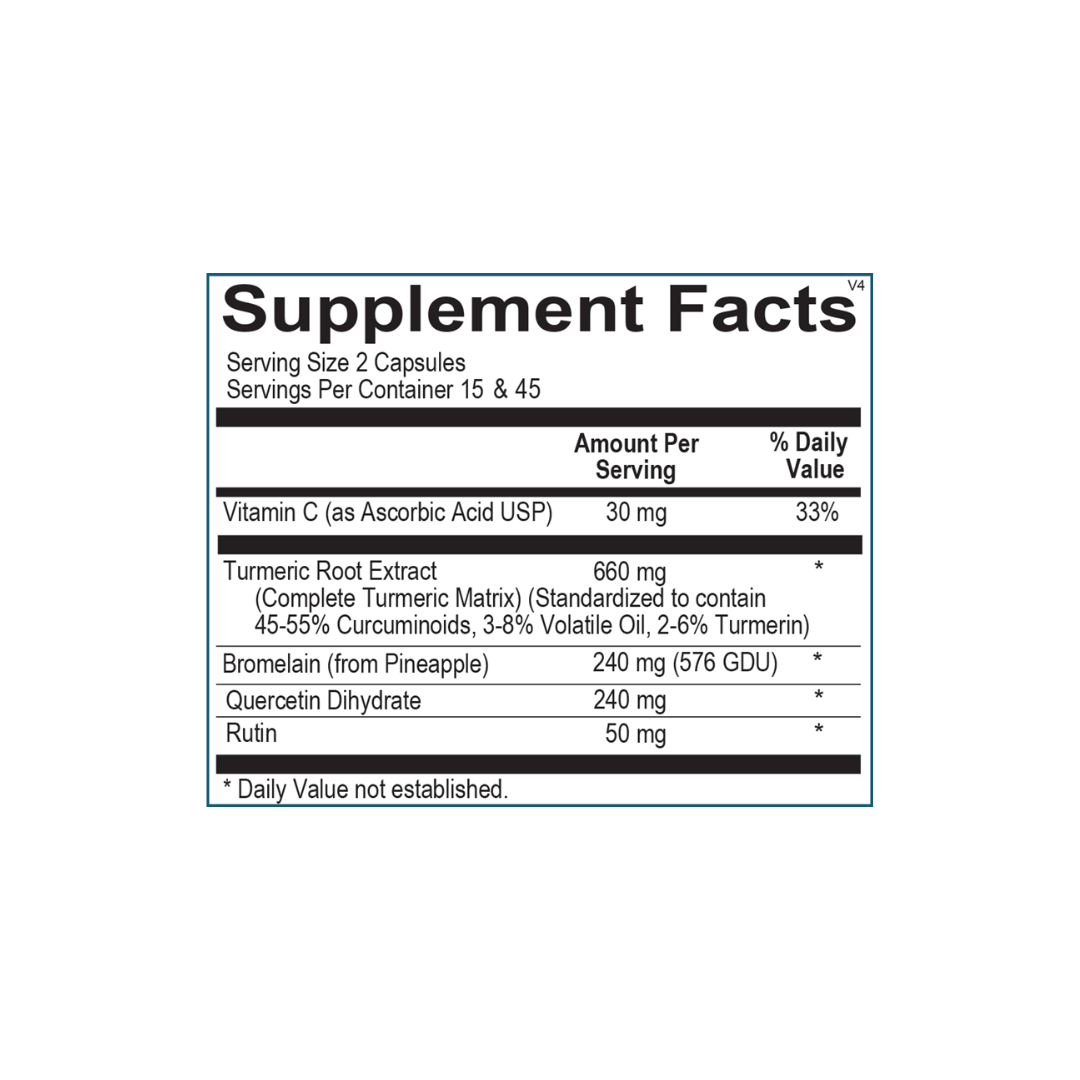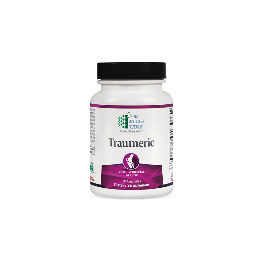 Traumeric is a natural complex of the entire turmeric root that includes all three curcuminoids, turmerin protein, turmerone oil, β-elemene, curdione, bisacurone and calebin A, making it a comprehensive inflammatory support option that provides broader benefit than isolated curcumin compounds alone. Traumeric contains a standardized amount of 45%–55% curcuminoids, 2%-6% turmerin protein, 3%-8% volatile oils; quercetin, rutin and bromelain that support healthy inflammatory signaling. Traumeric balances prostaglandin, prostacyclin, leukotriene and thromboxane metabolism and inhibits the activating signals of a wide variety of compounds involved in pain and inflammation from exercise.